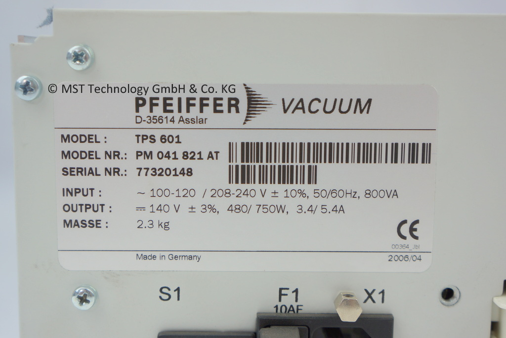 Pfeiffer Vacuum TPS 601 Turbo Pump Power Supply (PM 041 821 AT)