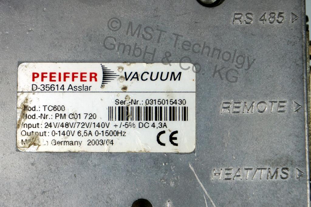 Pfeiffer Vacuum TMH 1001 Turbomolekularpumpe PM P03 300 G mit TC 600