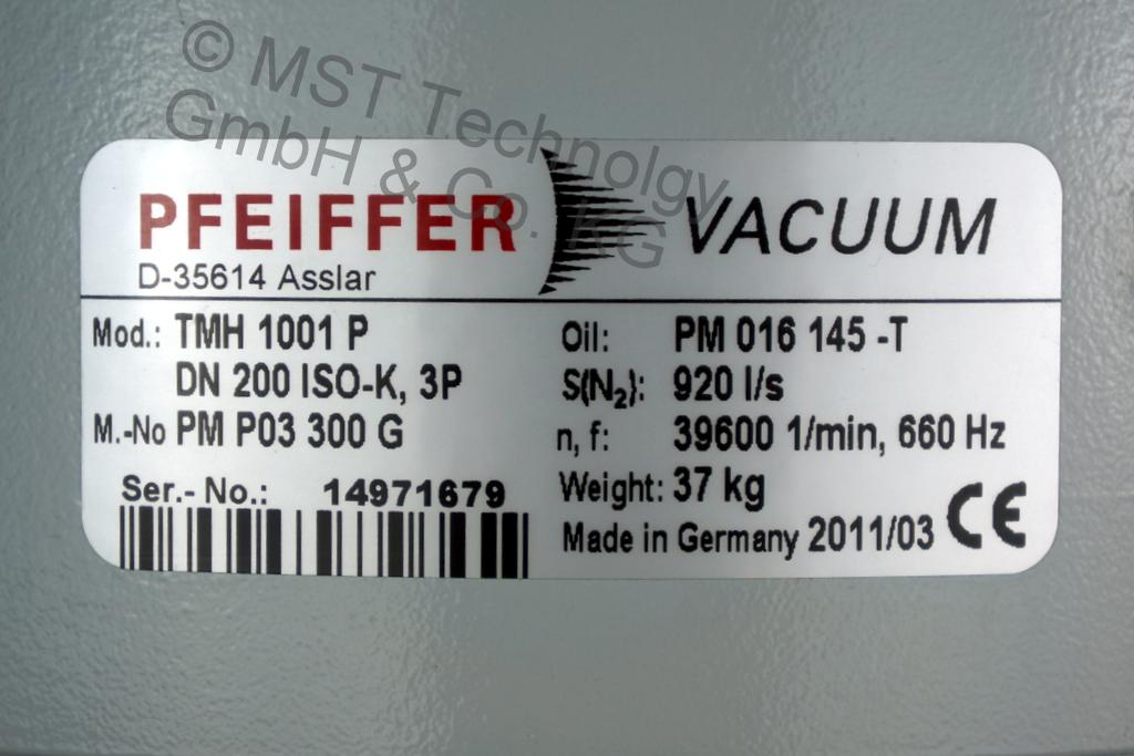 Pfeiffer Vacuum TMH 1001 P Turbomolekularpumpe PM P03 300 G mit TC 600 gebraucht generalüberholt